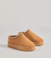 Step into these cozy faux suede platform slippers with a trendy geometric trim and a closed almond...