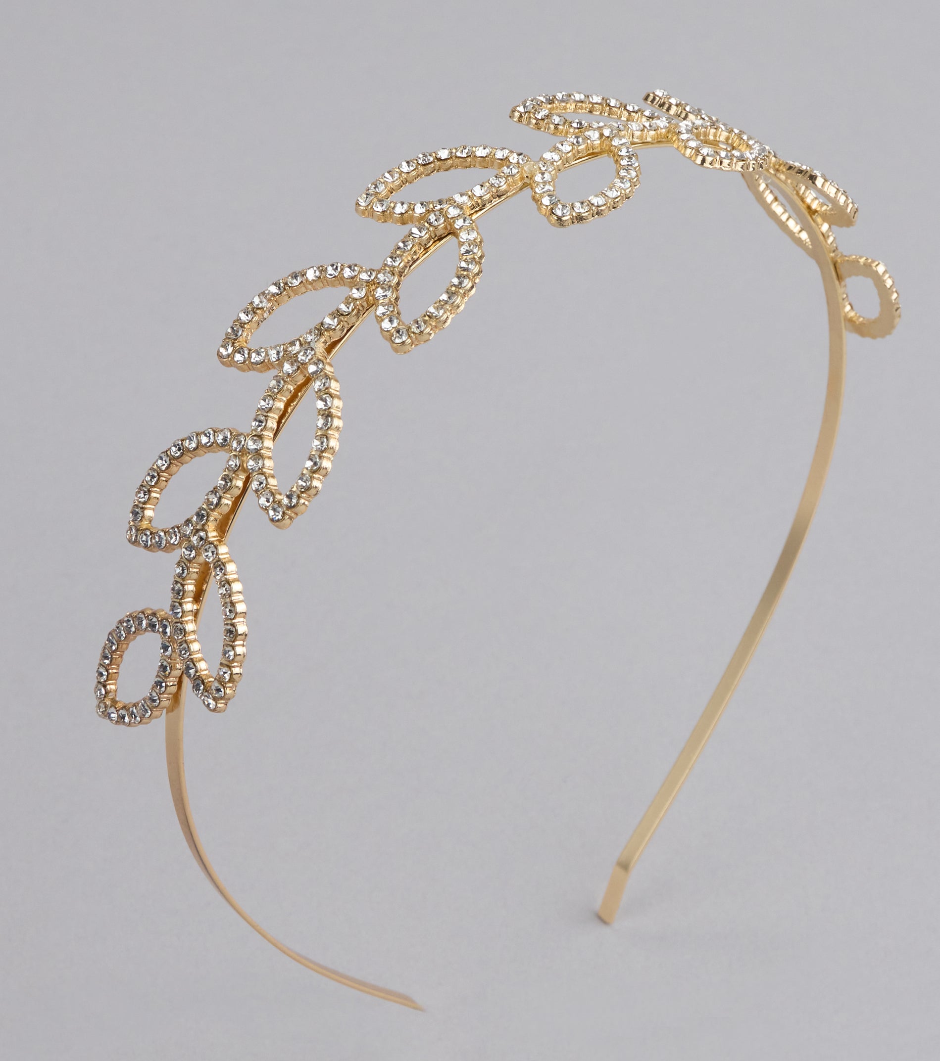 Because your outfit deserves a standing ovation—starting at the top. This gold leaf headband adds a goddess-core...