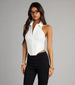 Crisp days call for sleek layers. This halter collared corset top blends tailored structure with an open-back...