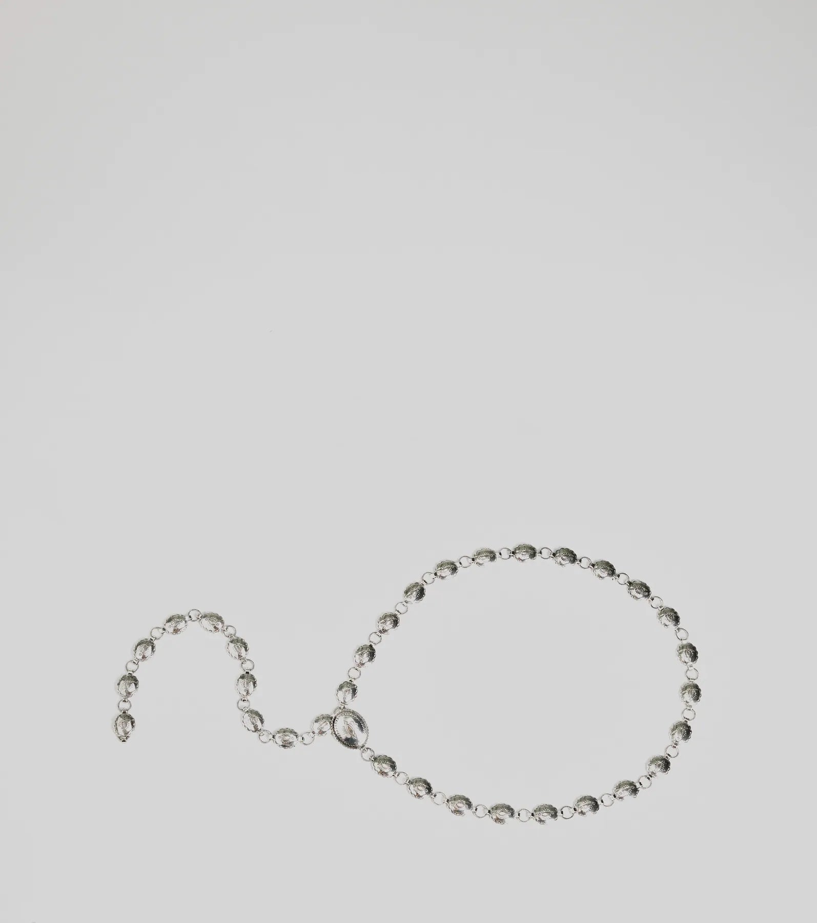Bring that western charm with a chain belt that features a mini concho design and clasp closure....