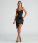Slip into this daring satin mini dress for a night of drinks and dancing! The dress features...