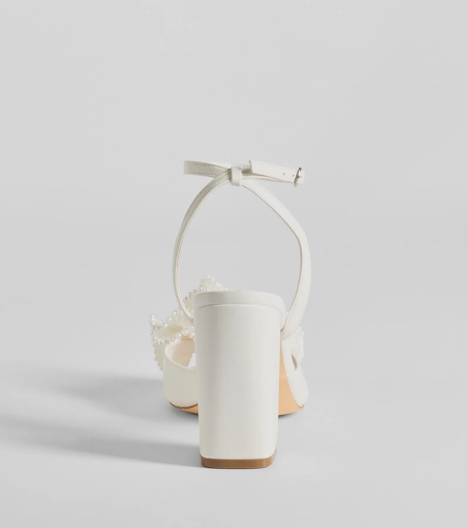 The glam allure of these darling faux leather block heels will make your walk down the aisle...