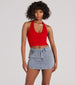 This basic crop top is perfect for day or night styling! Made with a flattering halter V-neckline....