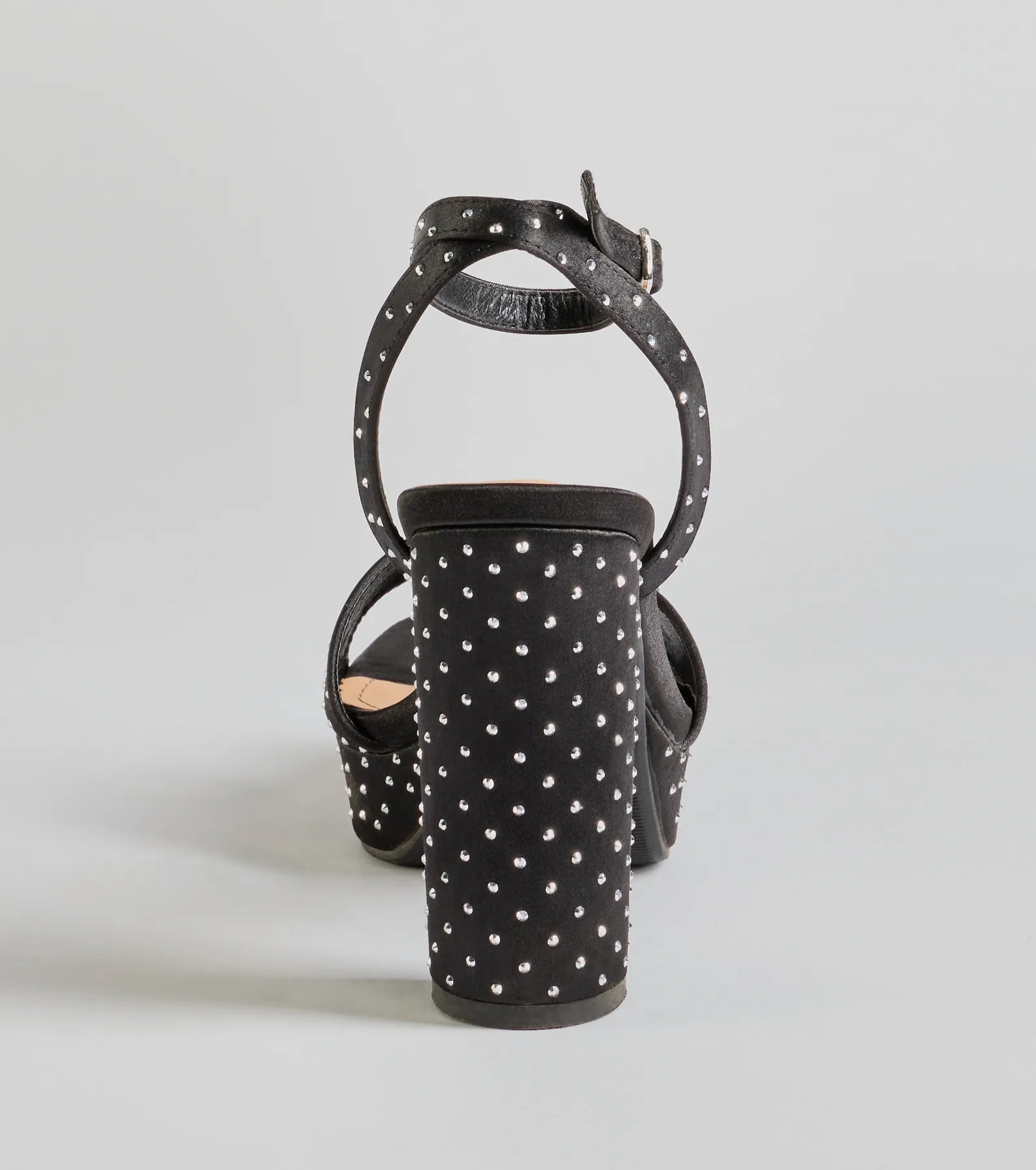 Dazzling Moments Rhinestone Platform Satin Block Heels