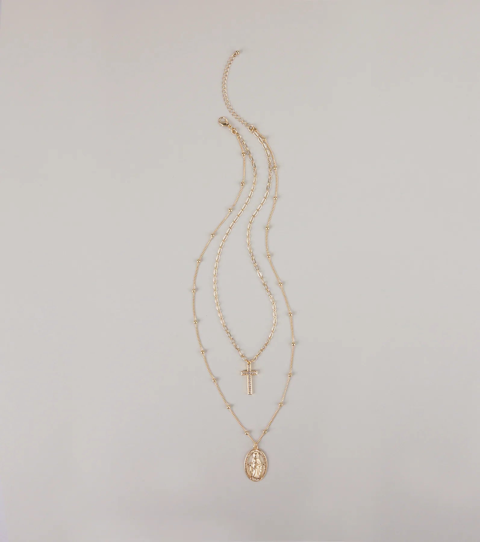 Divine Layers Cross Pendant Chain Necklace