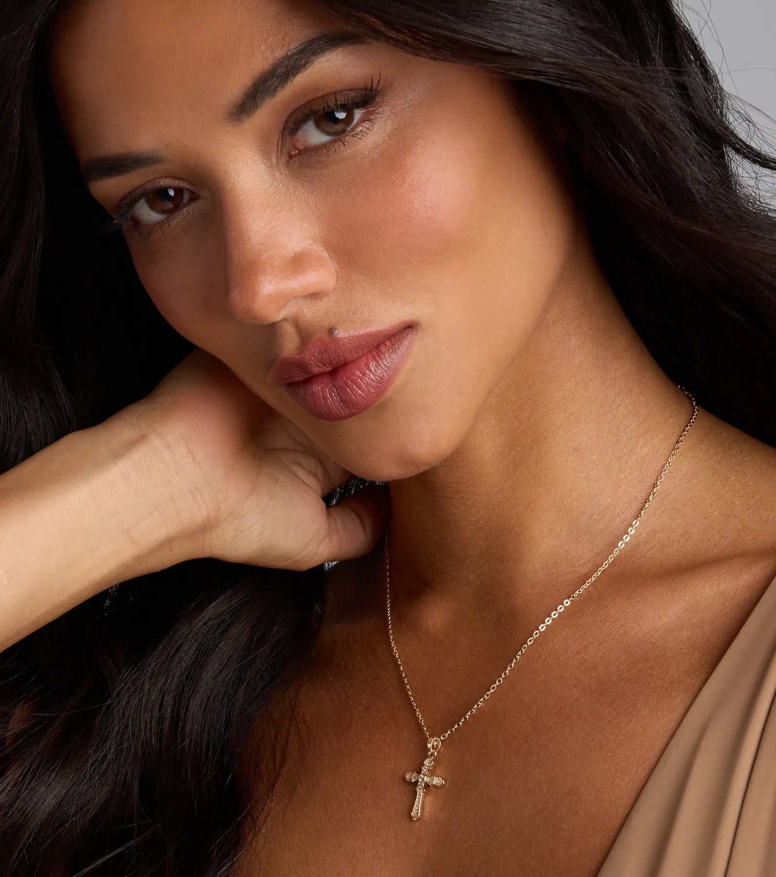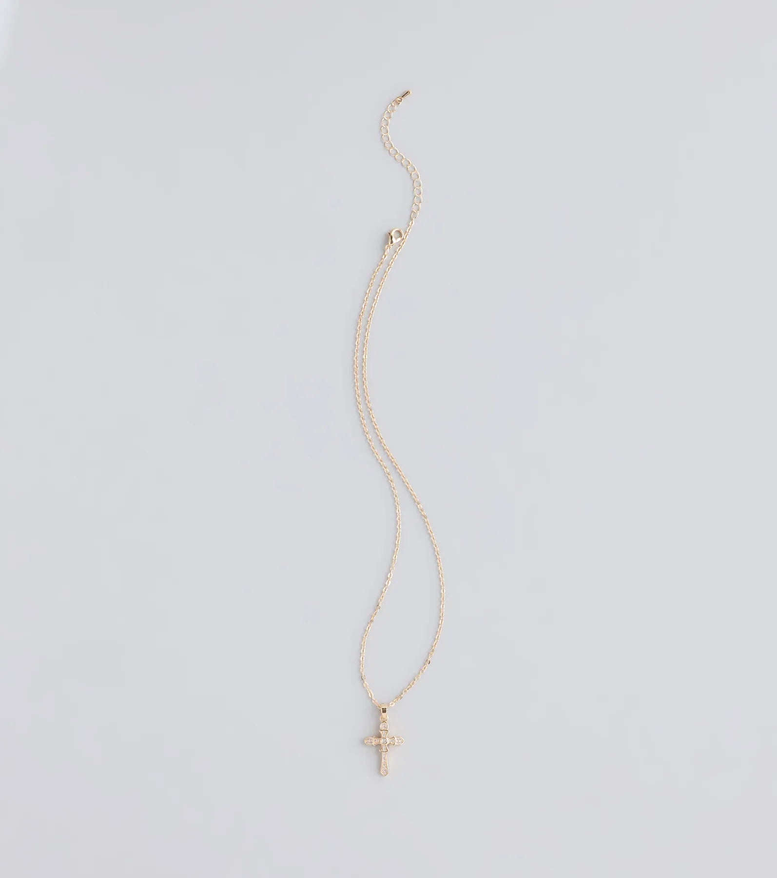 Show off a divine shine in this dainty chain necklace featuring a small cross pendant with mini...