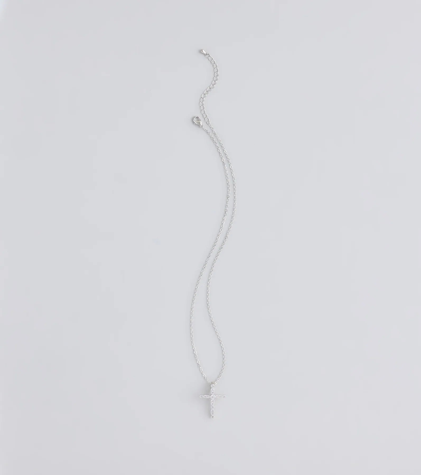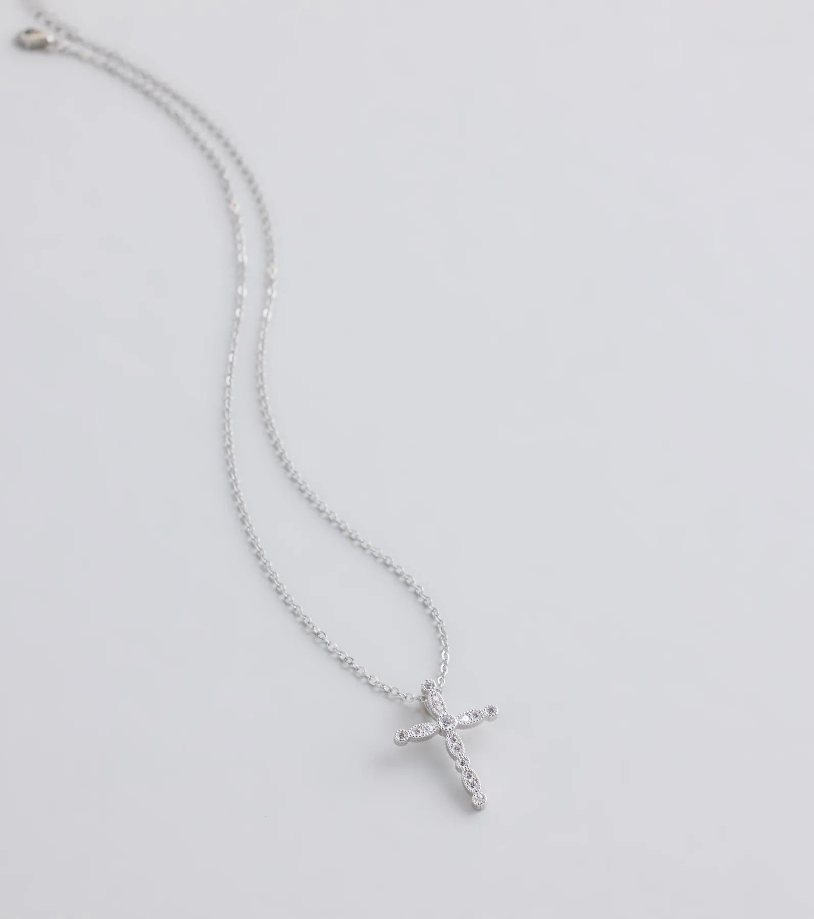 Radiate a divine sparkle in this dainty chain necklace featuring a cross pendant with small cubic zirconia...