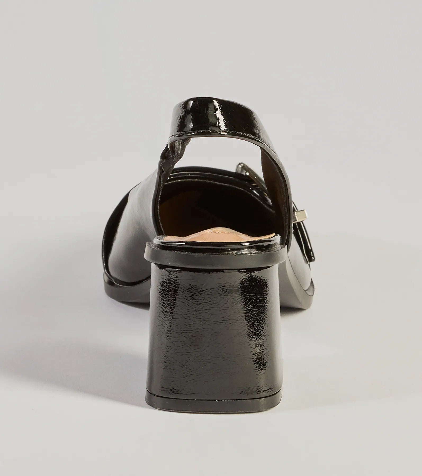 Edgy Glam Faux Patent Leather Slingback Buckle Pumps