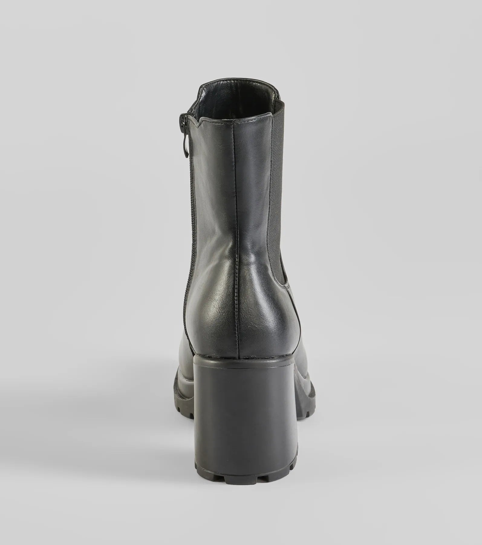 Take edgy struts in these faux leather platform booties! Pair with a sleek jacket.Fit & Features 3"...