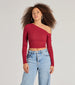 Create effortless outfits with this rib knit crop top flaunting a chic one-shoulder neckline and fitted long...