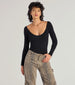 Elevate this season in this long sleeve bodysuit that'll give the perfect tucked-in look with your favorite...