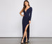 Go for drama in our fab Evangeline. Her one-shoulder long sleeve and thigh-high slit add a modern...