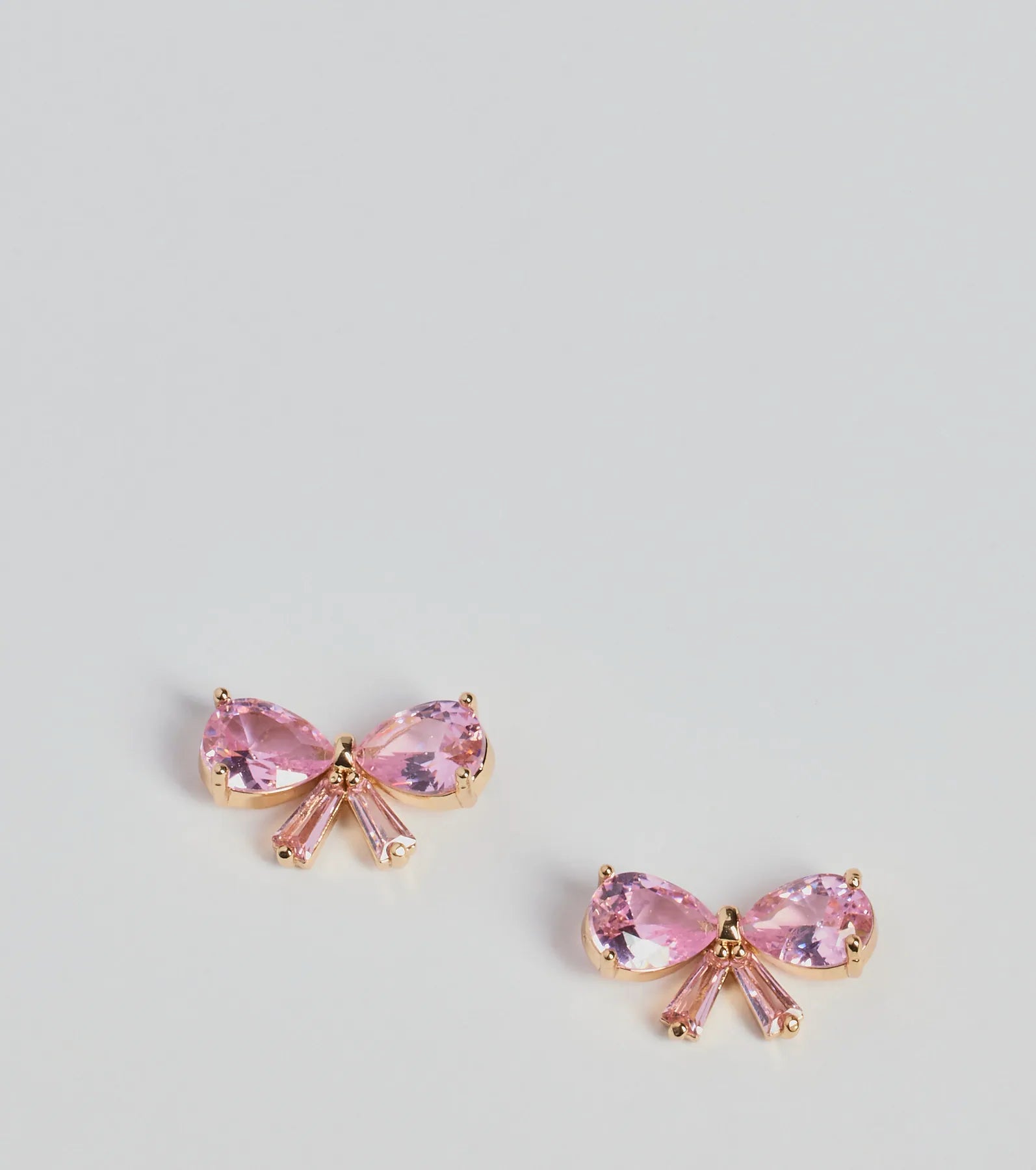 Charm everyone with these adorable rhinestone bow stud earrings! Complete the look in a darling skater dress...
