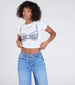 Play up your femme sass with this lace bra graphic crop tee. perfect for elevating a pair...