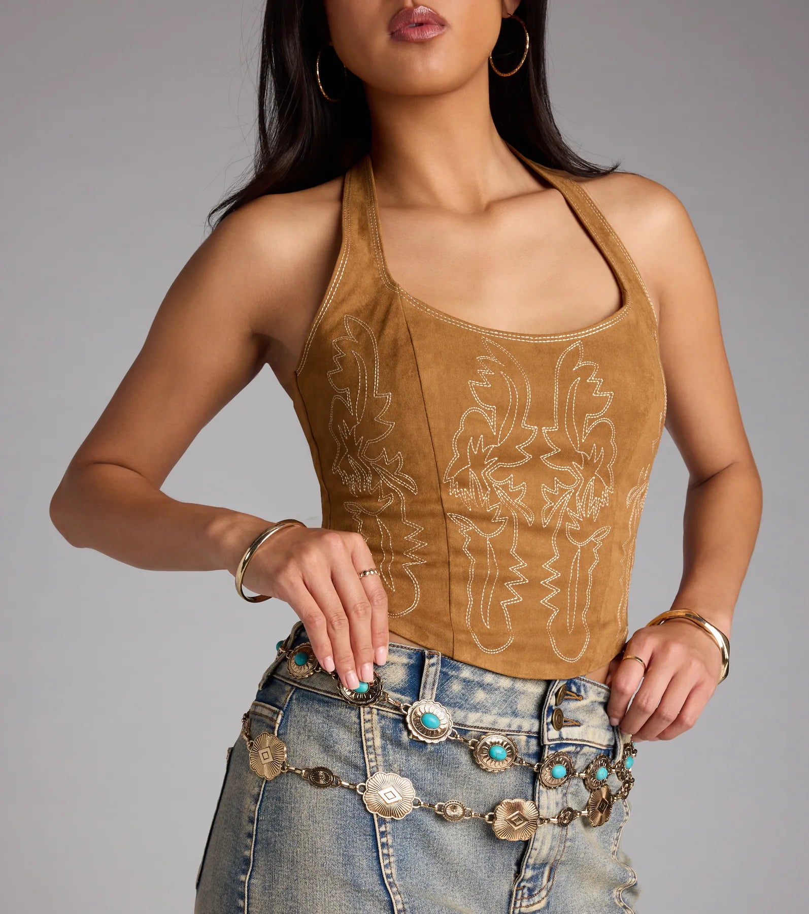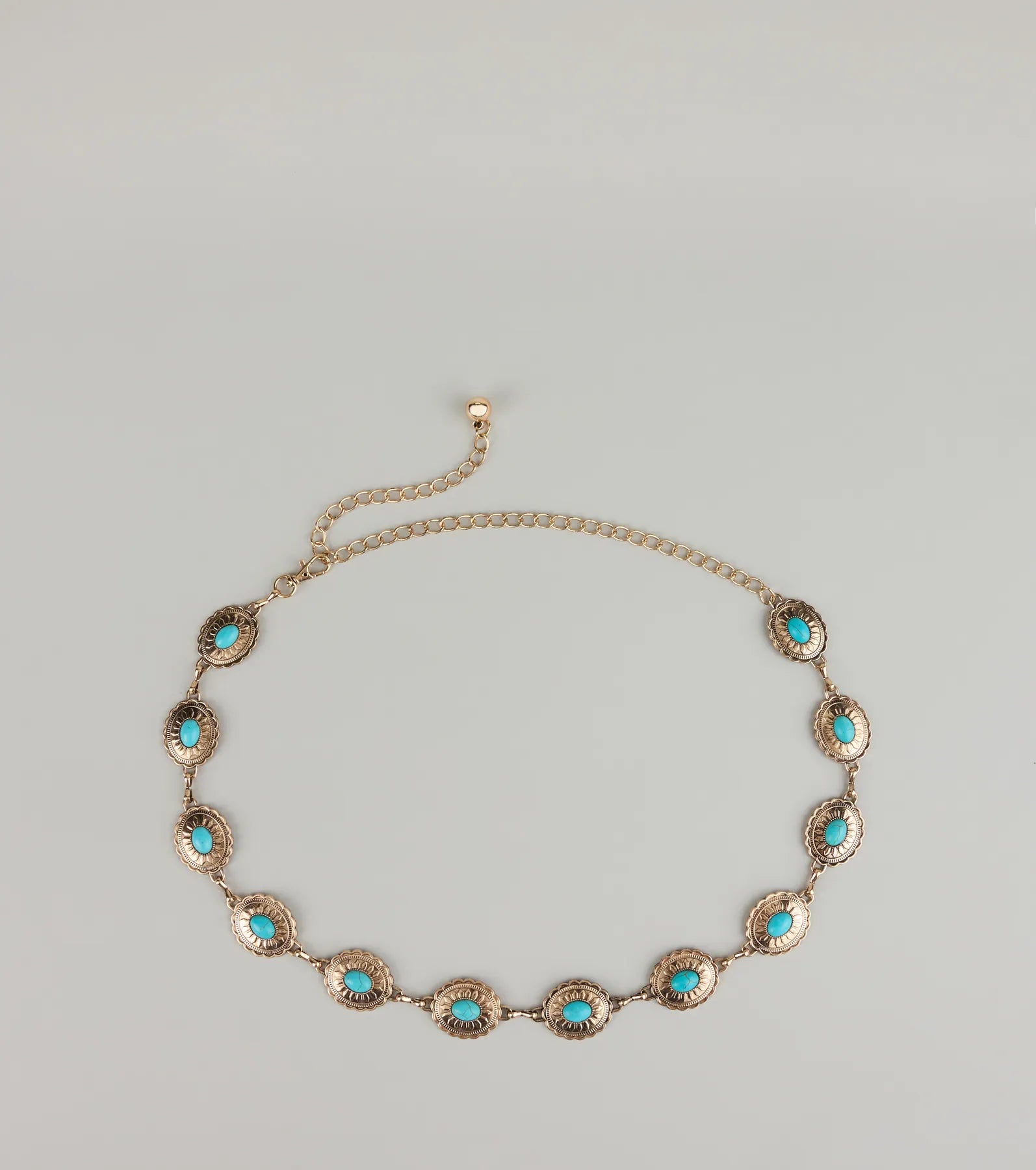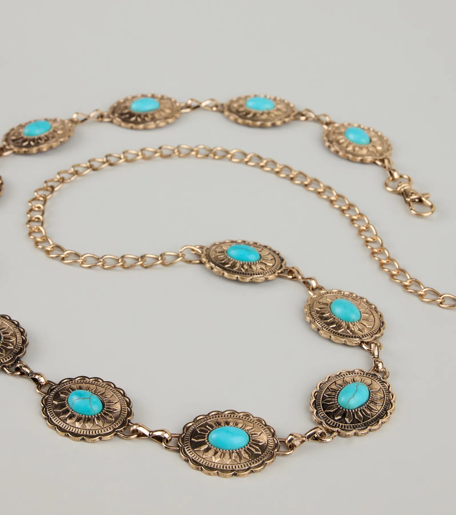 Serving wild west energy with a side of festival flair. This turquoise concho chain belt gives your...