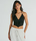 Festive Icon V-Neck Fringe Halter Faux Suede Crop Top