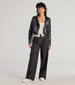 Fit & Features Woven knit fabrication. moderate stretch High-rise waist Contrast-hued foldover waist accent Slant pockets Wide-leg...
