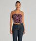 Nail the look with this floral ruched cropped corset top. This mesh beauty flaunts a sleeveless square...