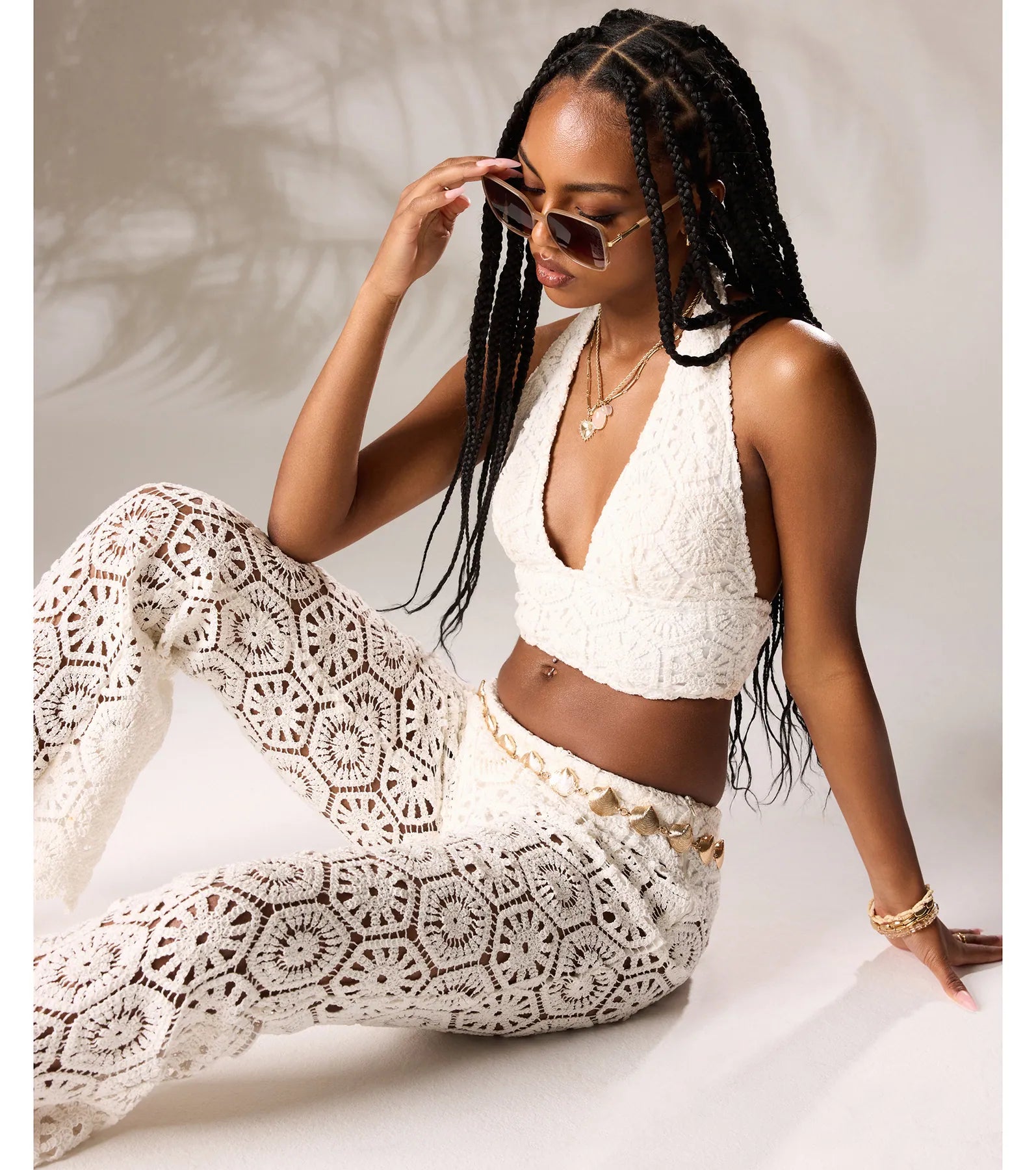 Curate effortless vibes in these crochet high-rise pants. perfect for pairing with the matching top for a...