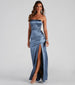 Gianna Strapless High-Slit Satin Dress