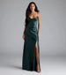 Gigi Cowl Neck Button Slit Satin Formal Dress
