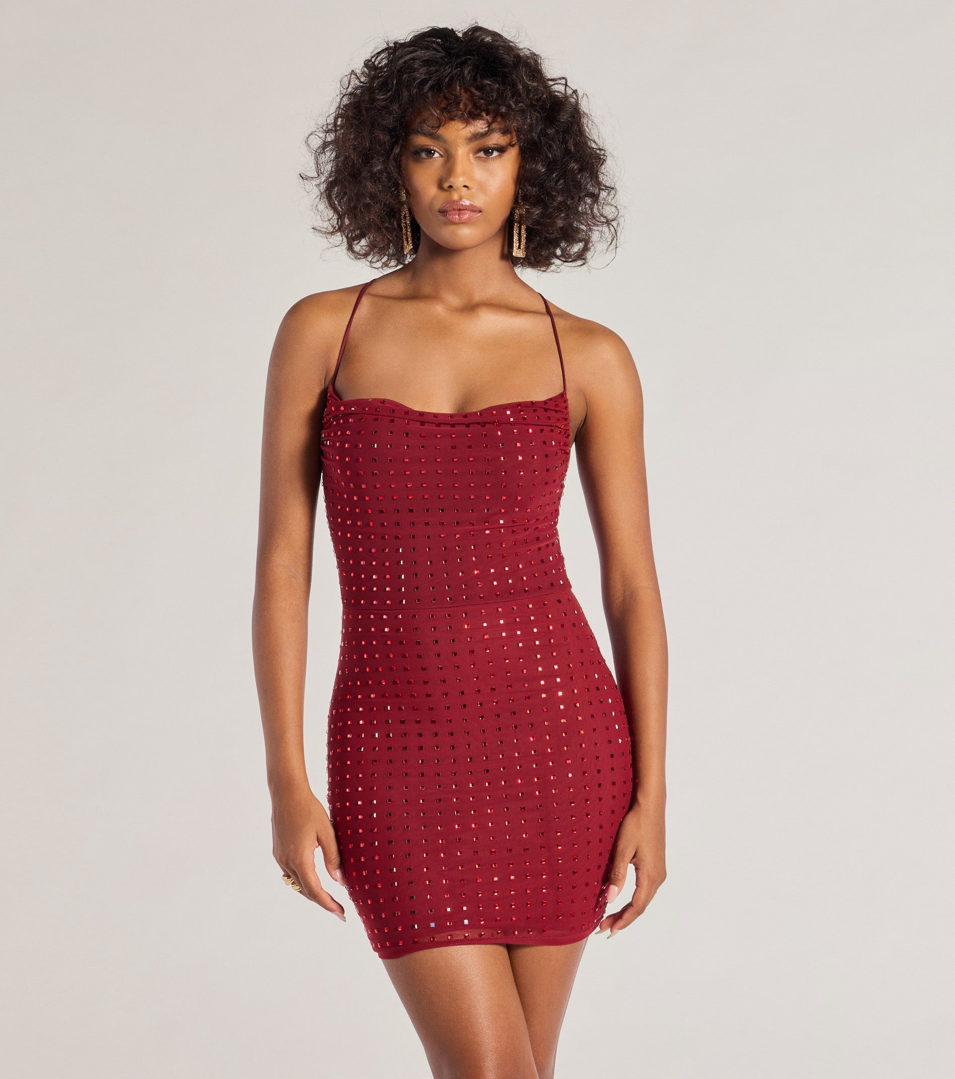 Glam Babe Rhinestone Mesh Strappy Back Mini Dress