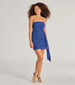 Glitz and glow in this glitter mini dress boasting a strapless neckline and a wrap bodycon fit...
