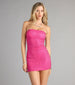 Steal every spotlight the second you walk in. This curve-hugging mini dress stuns with all-over rhinestone sparkle...