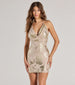 Glow like a true icon in a metallic mini-dress that brings the shine! The dress features an...