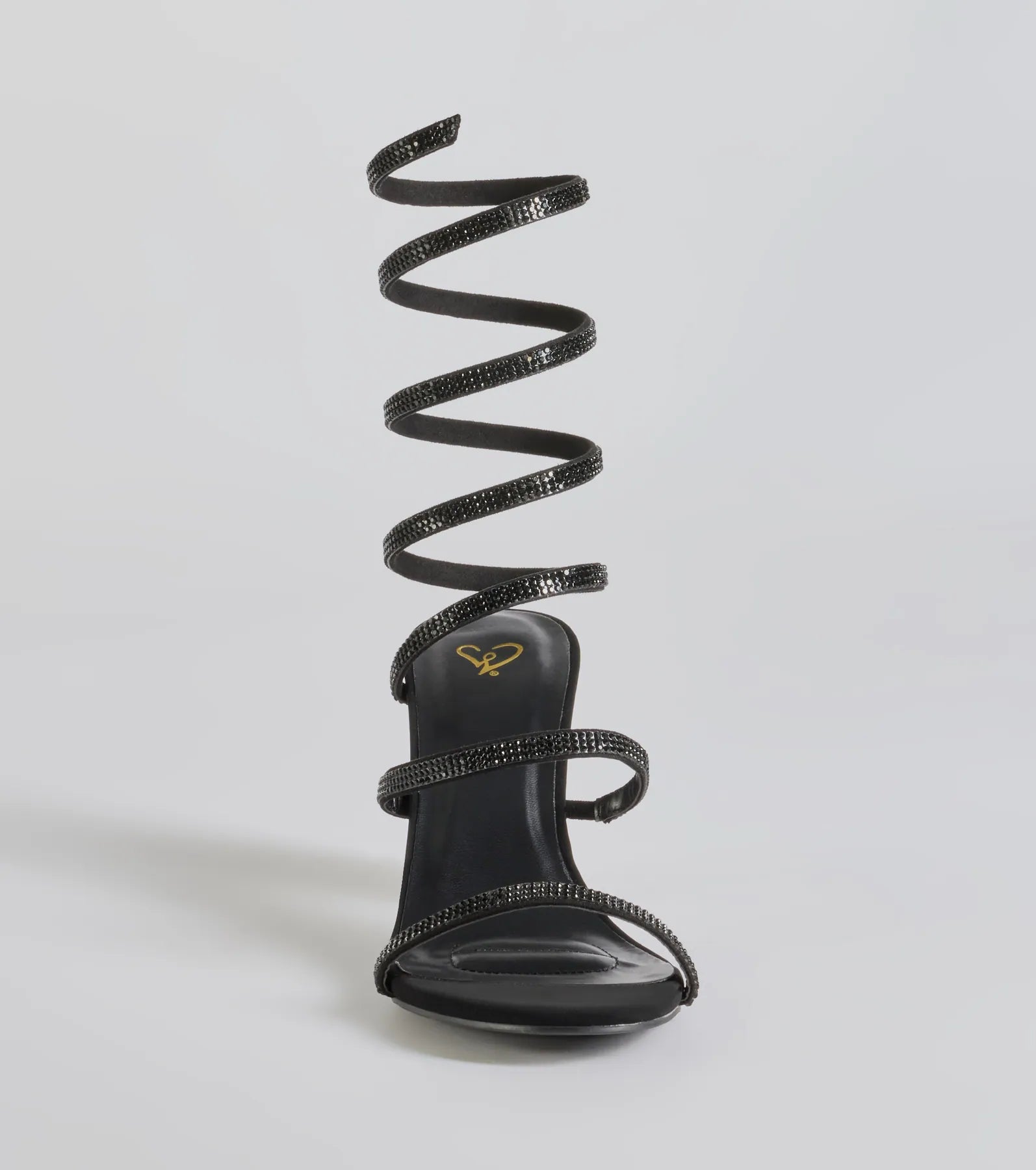 Gorgeous Girl Rhinestone Spiral Nubuck Block Heels