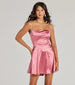 Make a grand exit after your formal affair in this flirty satin skater dress! Designed with a...
