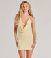 Guinevere Beaded Cowl Halter Mini Dress