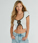 This short sleeve crop top is here to stay in your weekly lineup! Its dual tie front...