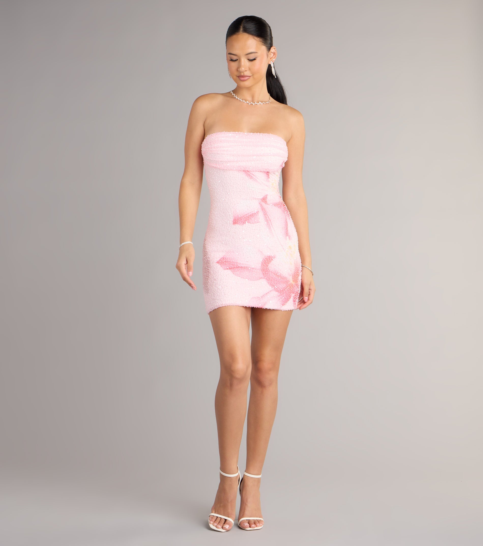 Hilary Tropical Floral Bead Mini Dress