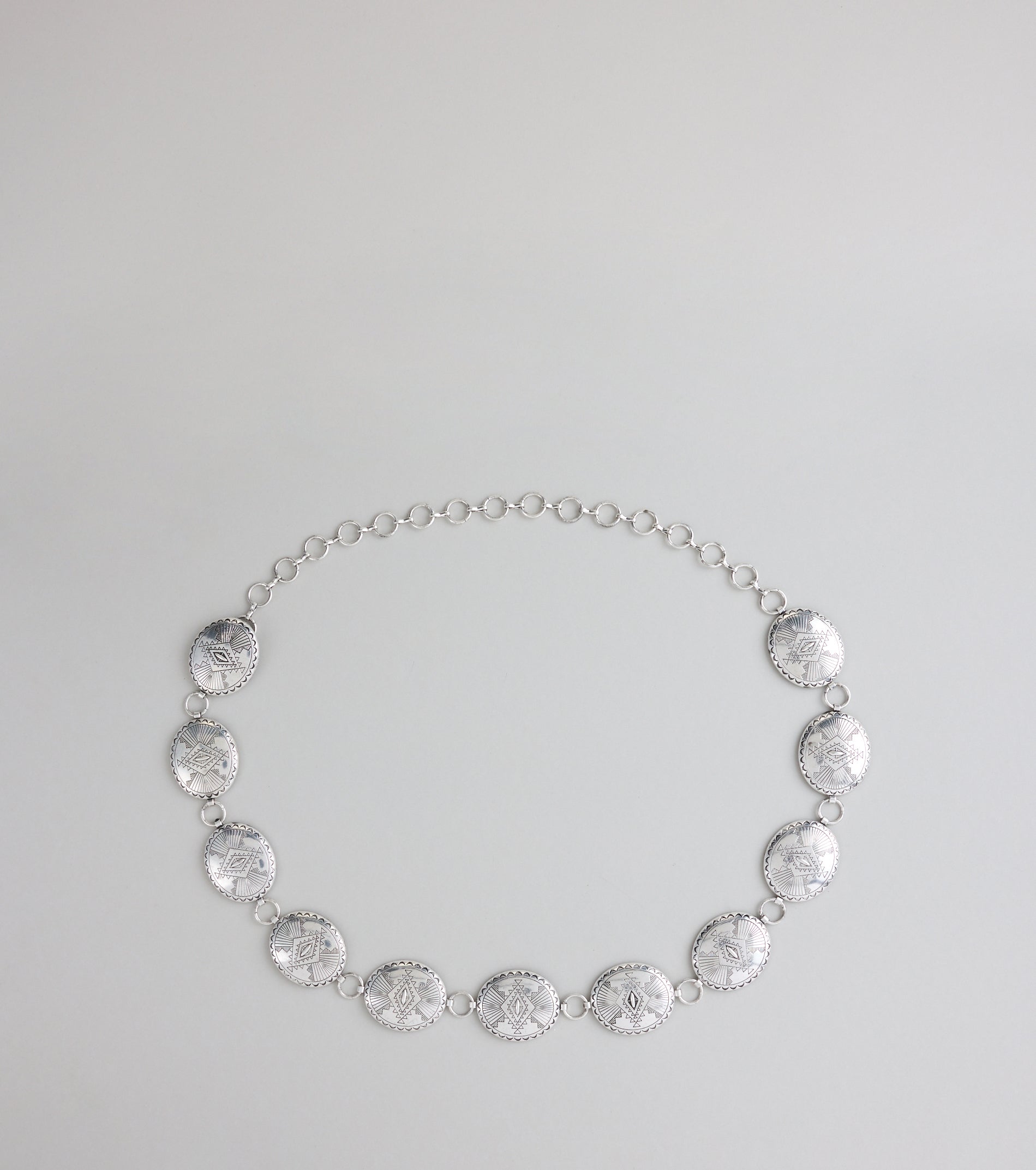 This bold. etched belt instantly elevates jeans. cargo pants. or your coolest oversized tee.Fit & Features Shiny...