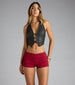 Create an iconic 'fit for concerts and festivals with these curve-hugging hot shorts featuring a low-rise waist....