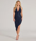 Glitzy with a hint of sultry style. this glitter knit midi dress features a V-neckline and halter...