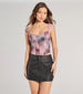 Fit & Features Faux leather fabric High-rise waist Front button closure Form-hugging fit. seam detailing Mini-length hem...