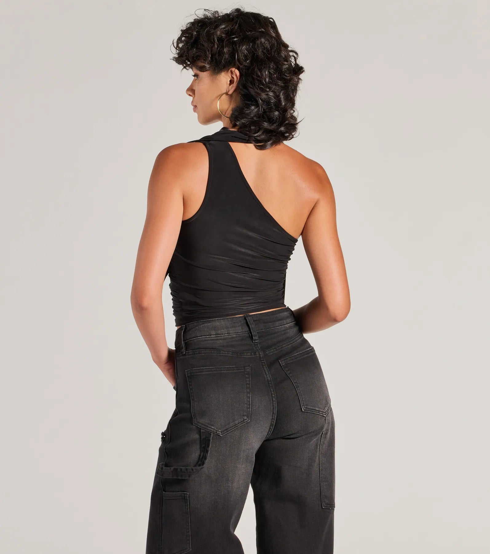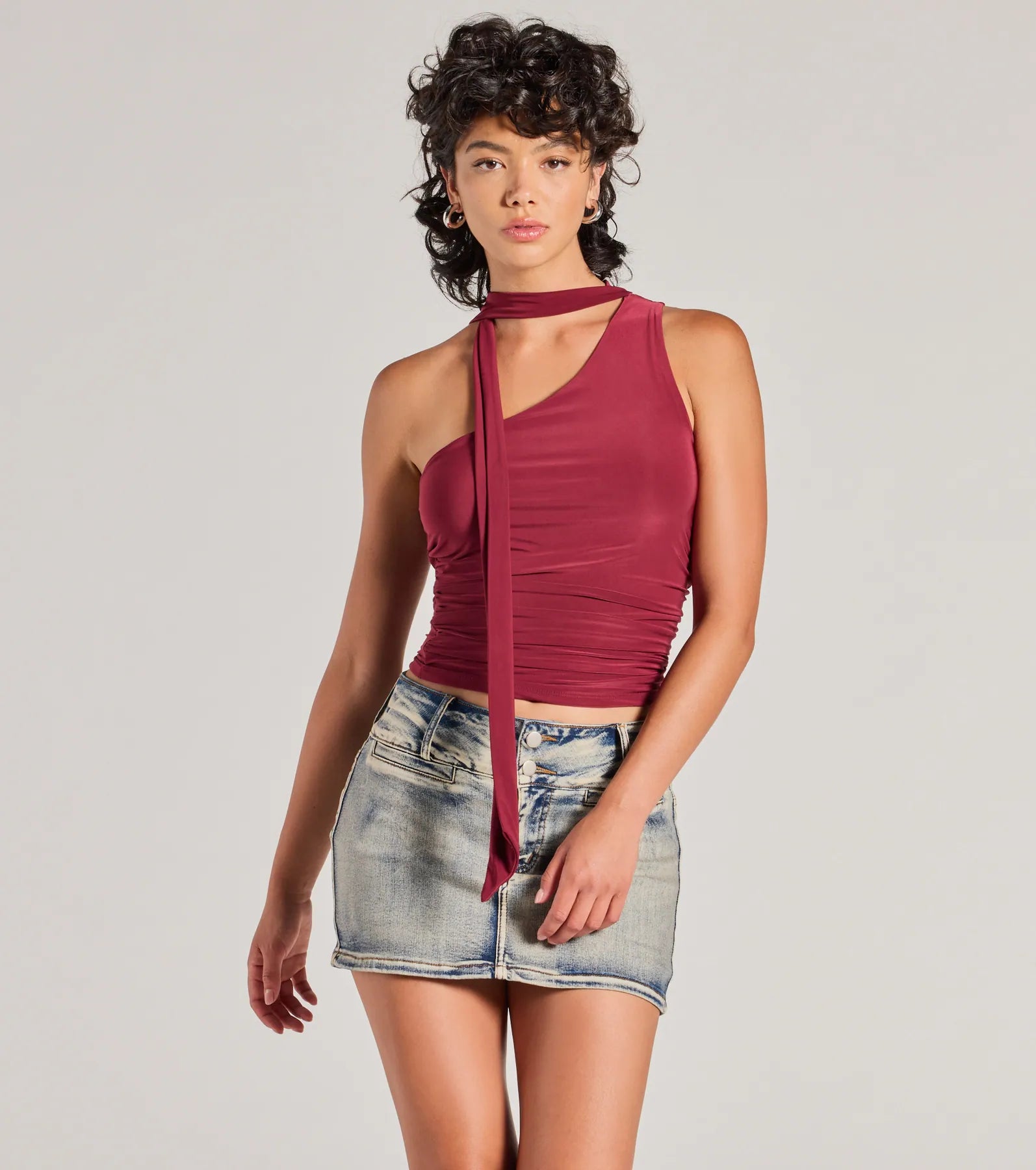 Chic and so on-trend. this stretchy knit top features an asymmetric one-shoulder neckline with an attached neck...