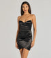 Jaylee Satin Strapless Wrap Bodycon Mini Dress