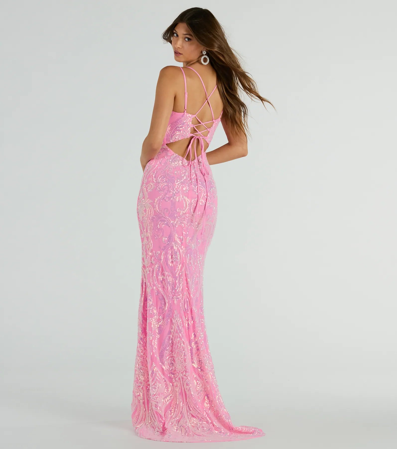 Jessa Lace-Up Mermaid Sequin Formal Dress