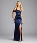 Jocelyn Cold Shoulder Slit Mermaid Satin Formal Dress