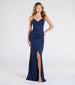 Johanna Cowl Neck Slit Glitter Formal Dress