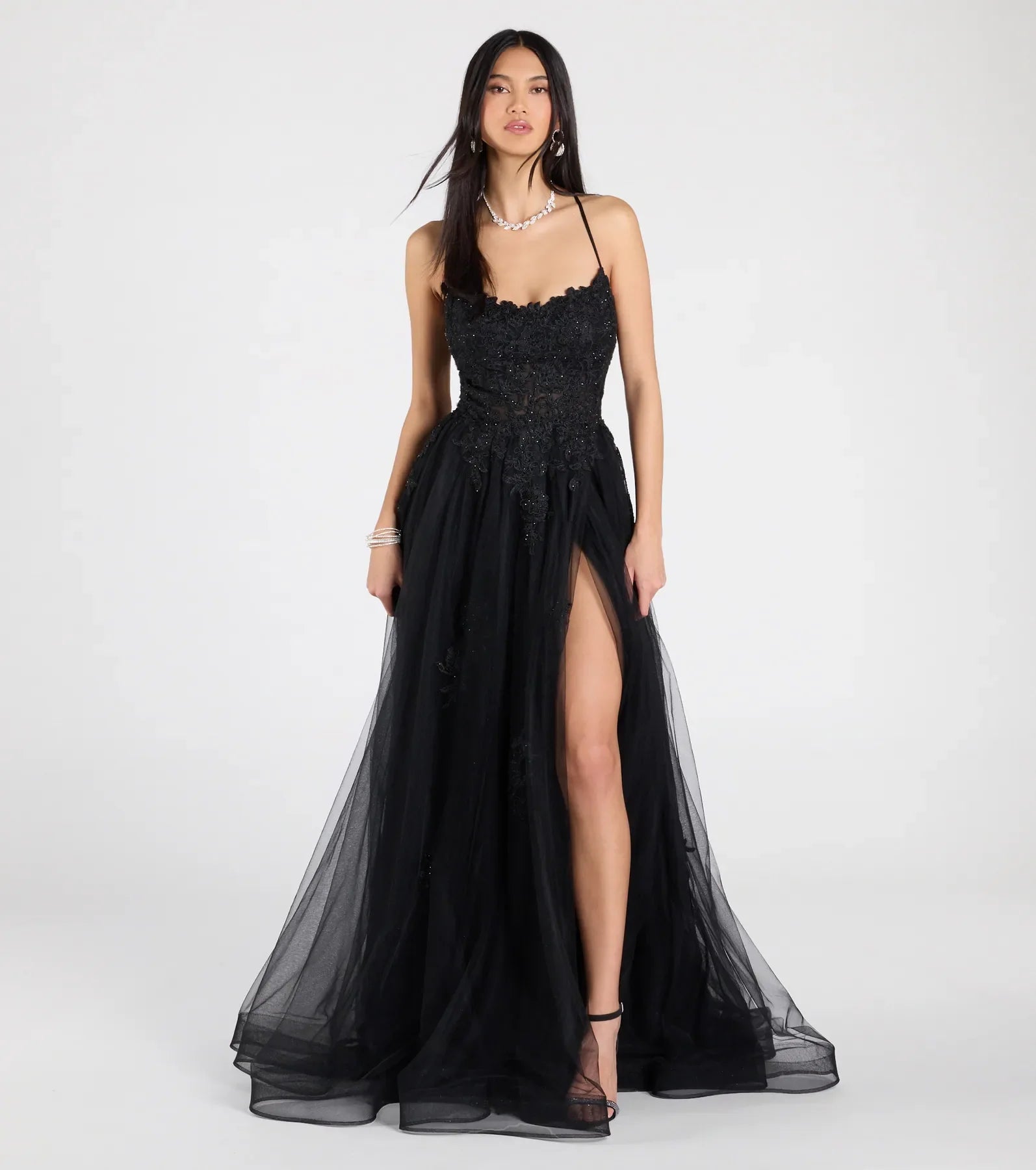 Julia Lace-Up Corset Slit A-Line Formal Dress