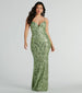 The Julissa V-neck sequin mesh mermaid dress will captivate the room with her glam perfection at dances. galas. or soirees! Crafted from a sheer mesh fabric with a full-length lining. she is accented with gleaming sequin embroidery in a luxe scroll pattern for that enchanting look. Her bodice is shaped with a sleeveless sweetheart neckline with a structured bust for support and adjustable spaghetti straps for a perfectly customized fit. Her cascading floor-sweeping mermaid silhouette will flaunt your stunning curves. Complete the look with rhinestone fringe earrings and stiletto heels for a dazzling vibe.