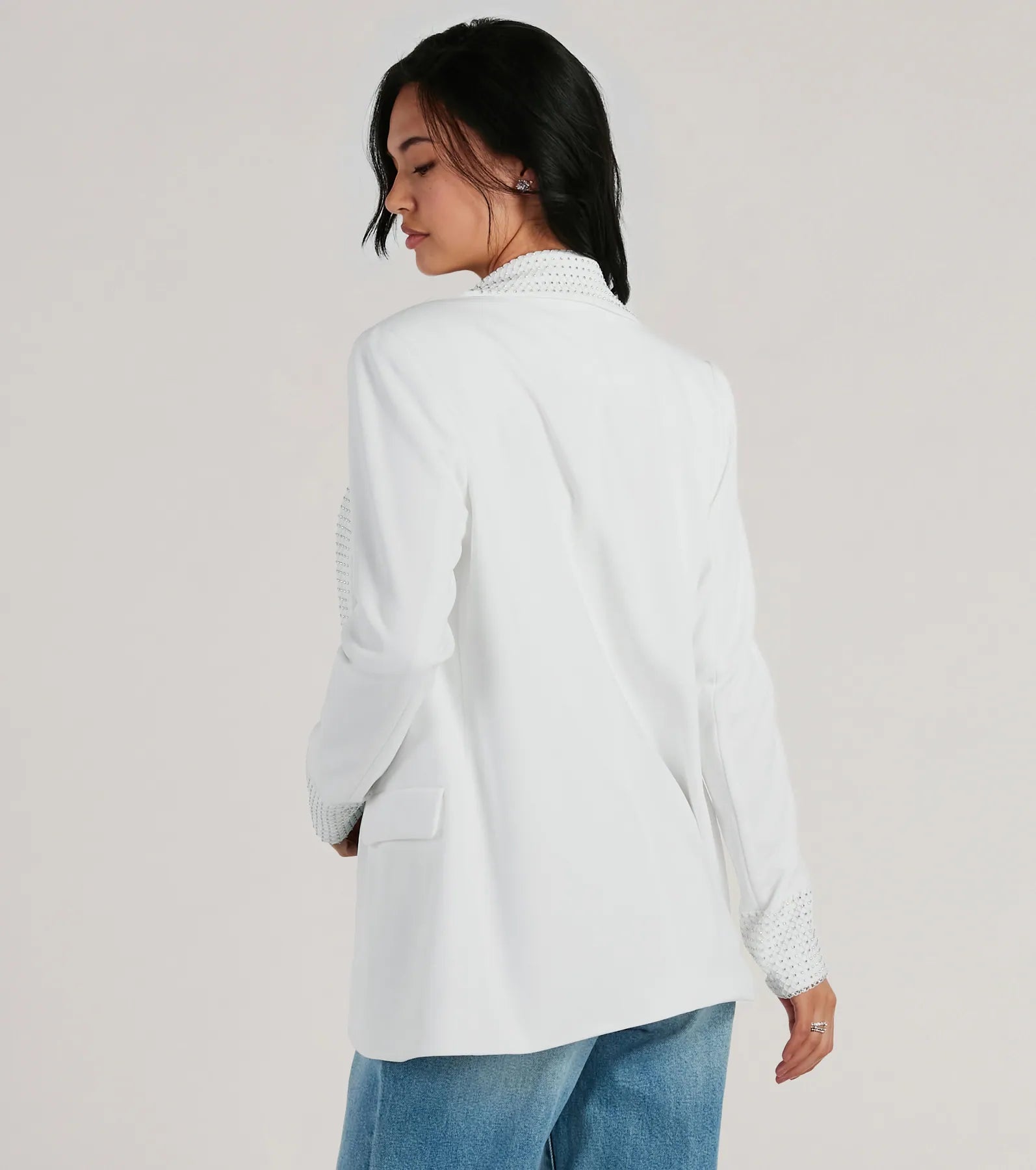 Just Business Rhinestone Fishnet Crepe Blazer