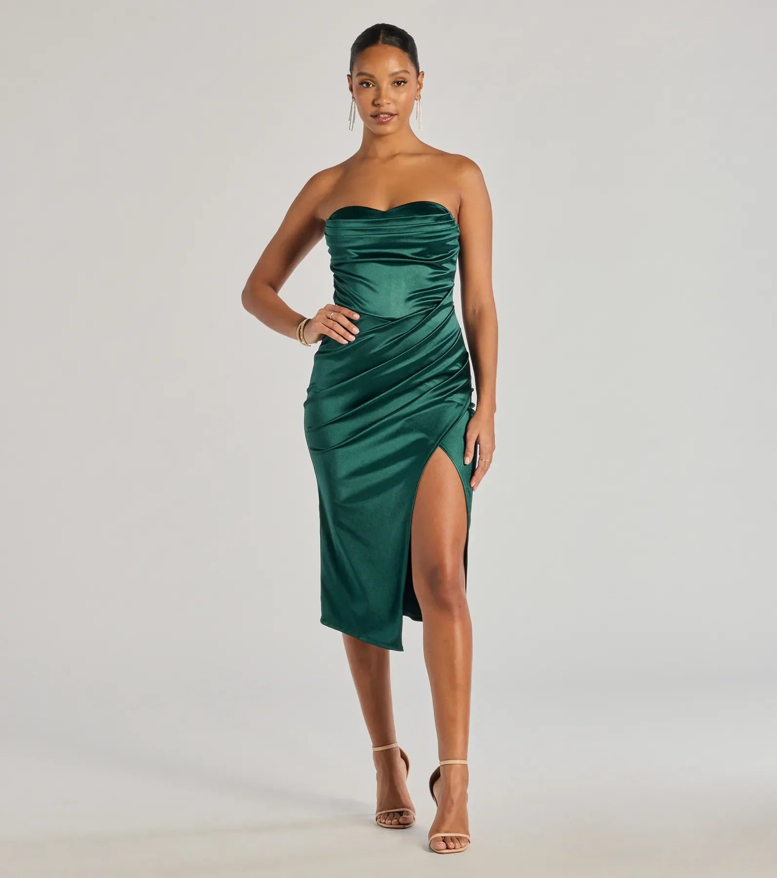 Special OccasionBring elegance in a midi dress that features a sleeveless cowl neckline. ruching to enhance curves....
