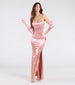 Kaleigh Corset Bow Satin Formal Dress With Gloves