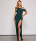 Special OccasionTurn heads in this sexy. off-the-shoulder formal dress. Draped to perfection. the silky-smooth knit fabric elegantly...