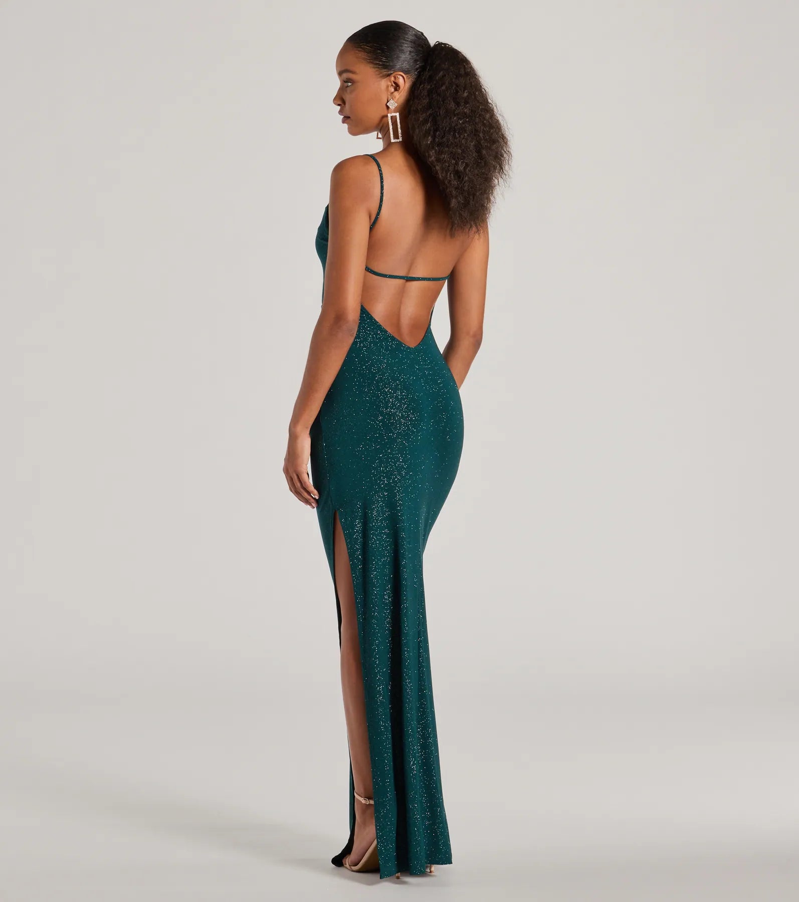 Kelly Cowl Neck Strappy Mermaid Glitter Formal Dress